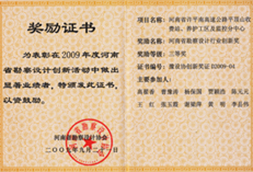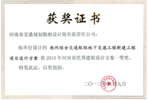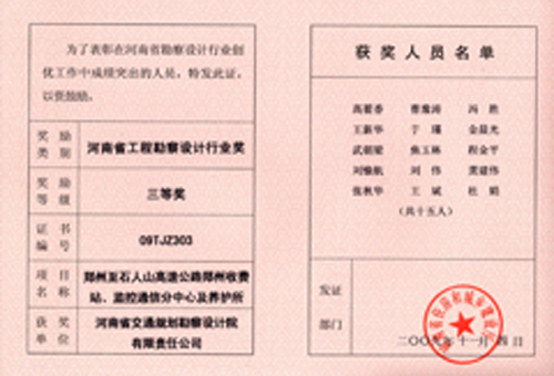 近年来,我院高质量、高标准完成了省内外近5000公里的高速公路沿线管理、服务设施以及汽车客运站、物流中心等交通项目的设计及咨询工作,积累了丰富的工程设计经验,先后获得十多项行业优秀勘察设计、咨询奖。濮阳收费站及监控分中心获河南省勘察设计行业创新奖一等奖,郑州综合交通枢纽公路客运站新建项目可行性研究报告获省优秀咨询一等奖。