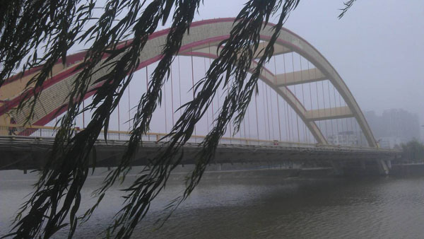 信阳市g107浉河大桥位于信阳市西关,该桥为中承式钢筋混凝土拱桥,净跨168m,矢高33.6m,拱肋高3.5m,宽1.5m(桥梁整体照片如图1.1所示)。桥横向布置为:1.75m人行道 3.5m慢车道 1.5m隔离栅 16m行车道 1.5m隔离栅 3...