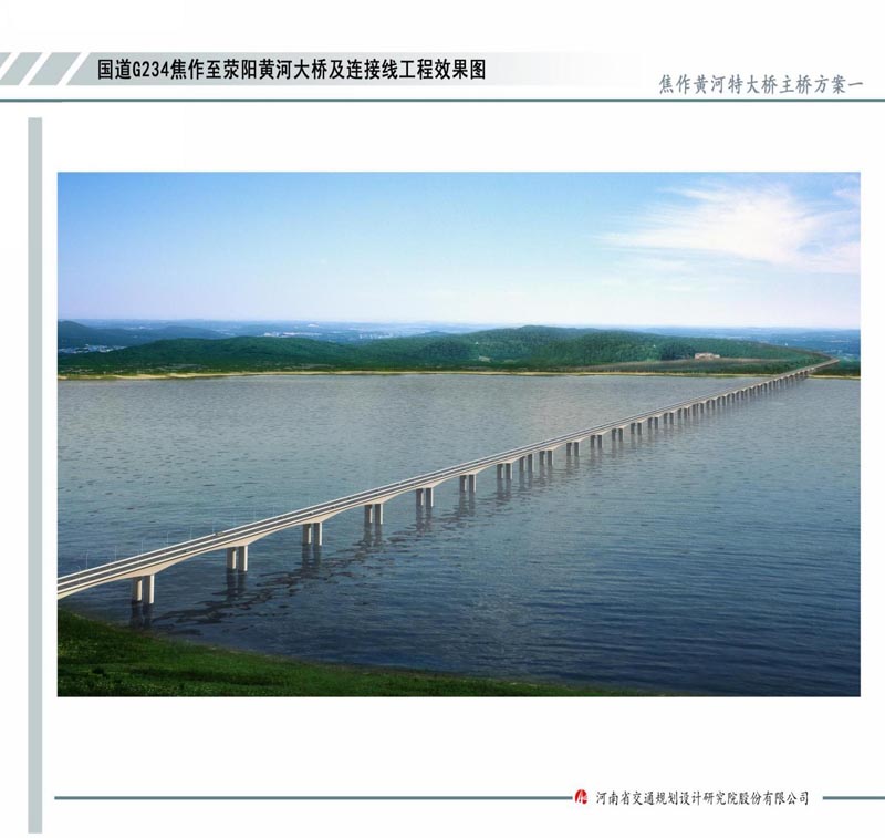 国道g234焦作至荥阳黄河大桥及连接线项目起于郑焦晋高速与塔南路(原省道s235)相连的焦作南互通立交,跨黄河后与省道s312(沿黄快速通道)相交,并与同期建设的沿黄快速通道至连霍高速线路衔接。黄河大桥主桥全长3800...