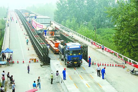 东沙颖河大桥位于周口市境省道绕城改线公路11公里处,桥梁全长406.1米,上部结构为10跨跨径为40米部分预应力混凝土组合箱梁,5跨一联,共2联;桥宽24米,其中行车道宽21米,两侧各1.5米人行道。设计荷载标准:汽-...