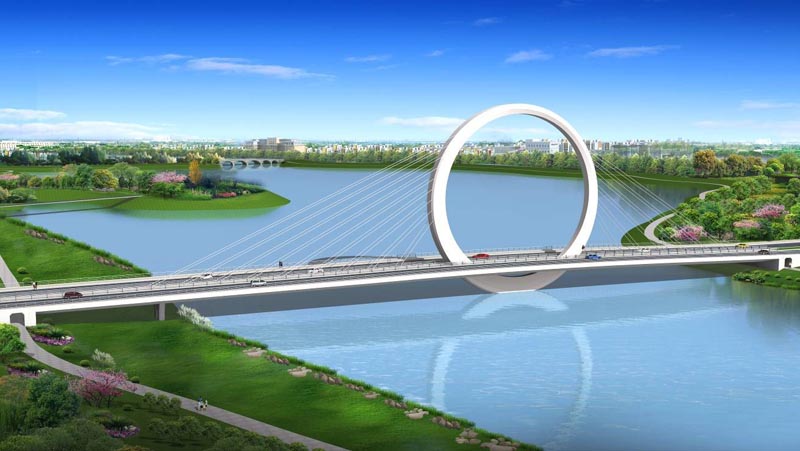 潮河大桥位于郑州市经南八路上,跨越潮河,是整个道路全线贯通的控制性工程,是郑州市经开区滨河国际新城的交通与景观节点。潮河大桥结构形式为三塔四跨地锚式悬索桥,桥梁全长400m,孔径布置为64 136 136 64=400m...