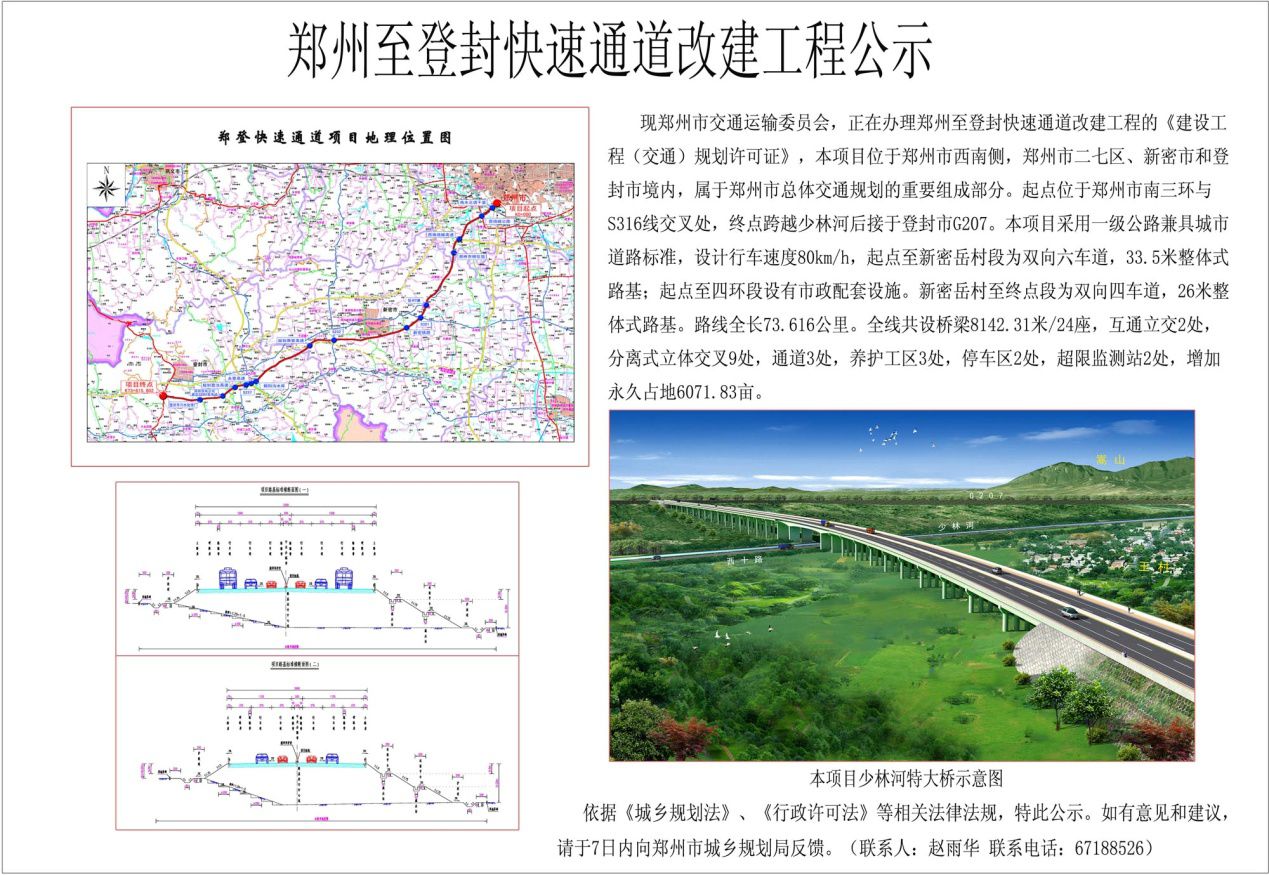 郑登快速通道建设工程是郑州市规划的十条城域快速通道之一。起点位于南三环与省道316交会处,终点于登封境内省道316与国道207交会处。道路全长75.029公里,其中郑州境13.383公里;新密境36.426公里;登封境公26.6...