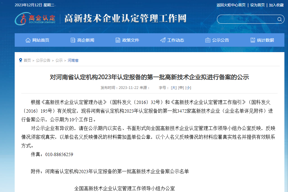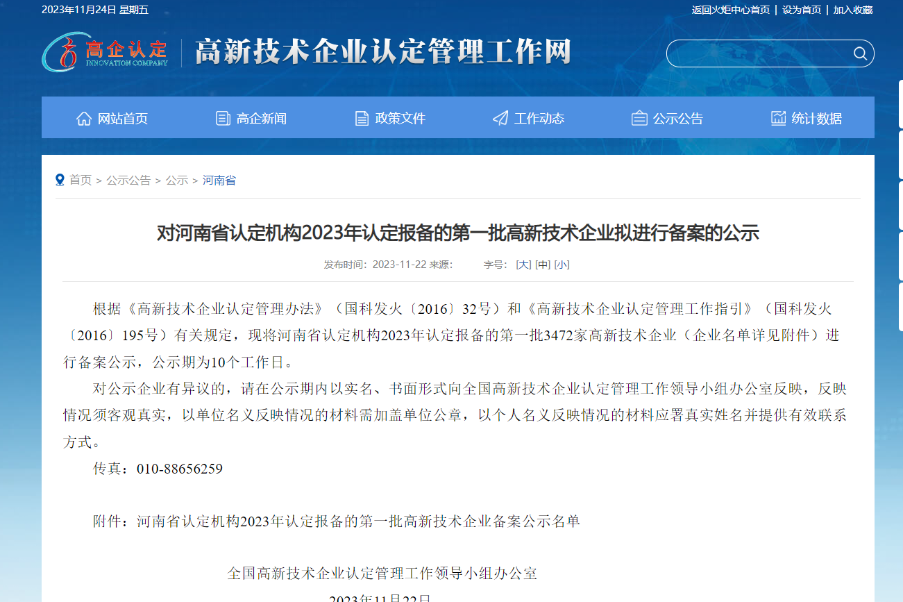 近日,根据《高新技术企业认定管理办法》(国科发火[2016]32号)和《高新技术企业认定管理工作指引》(国科发火[2016]195号)有关规定,全国高新技术企业认定管理工作领导小组办公室公示了河南省认定机构2023年认定报...