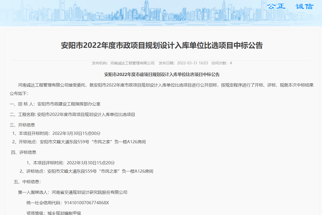 在公司领导和市场部的大力支持与帮助下,综合规划研究院以显著优势成功入围安阳市2022年度市政规划咨询单位库。本次入围对于推动城乡规划业务发展、全面拓展市政市场具有重要意义。