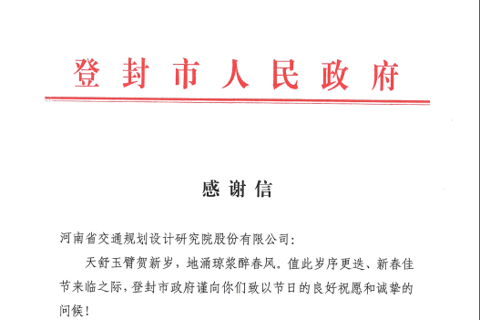 新春伊始,公司收到登封市人民政府的感谢和祝福,对我公司为登封市经济发展及道路工程建设作出的积极贡献给予了充分肯定。 近年来,我公司先后承接了g207线登封境改建工程、环嵩山旅游路改建工程等重大工程项目...