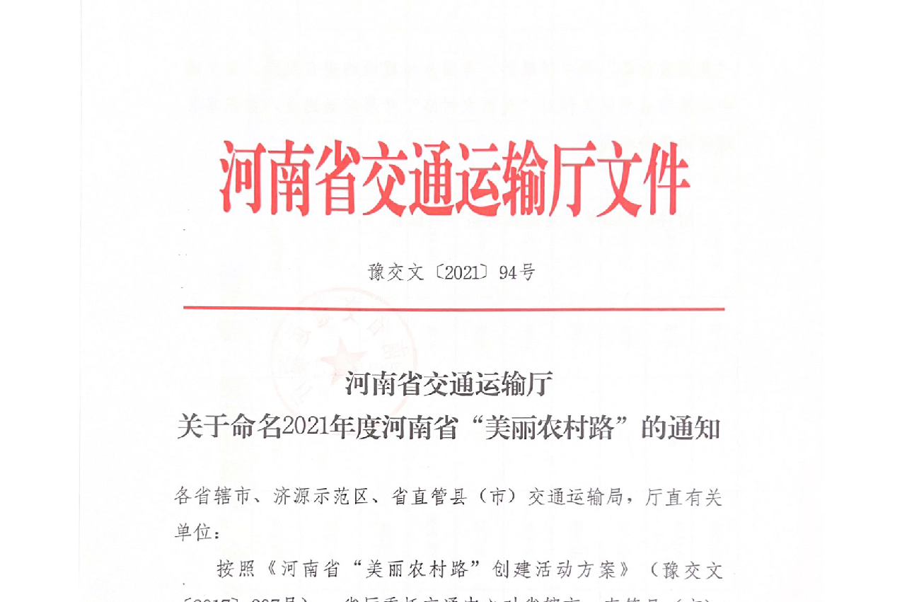 2021年12月30日,公司景观市政院承接的黄河控导工程连接线项目荣获2021年度河南省 “美丽农村路”称号,参与本次评选的项目均为高标杆、优品质精品农村路建设项目,本次荣誉的获得是省交通运输厅对公司在美丽农村...
