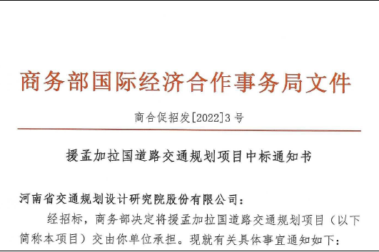 2022年1月4日,设研院成功中标援孟加拉国道路交通规划项目。该项目须提出符合孟加拉国家经济社会发展的国家干线公路网络,编制孟加拉国含主要河流桥梁在内的干线公路路网规划,技术援助期限为9个月。 设研院在与...