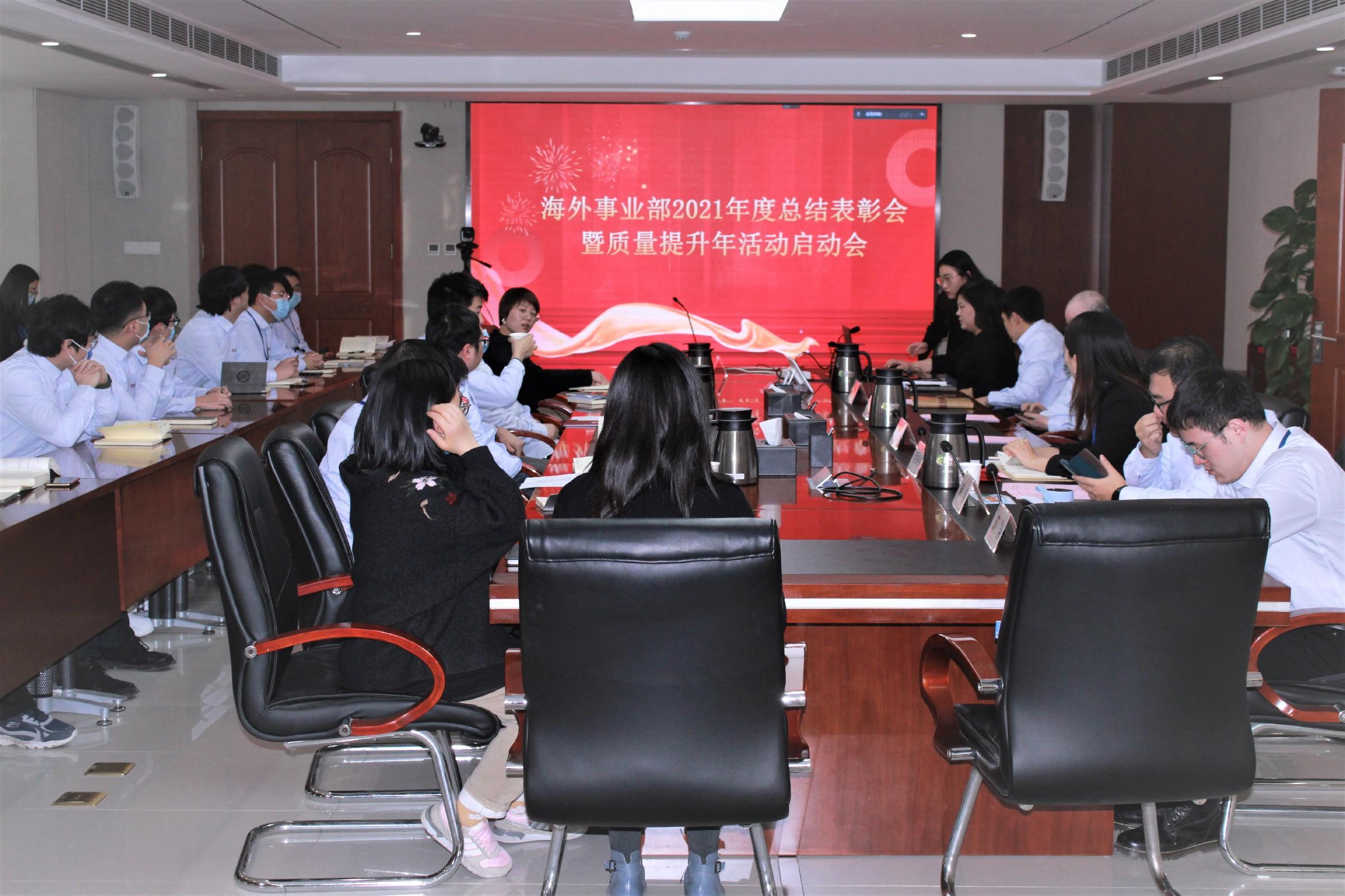 1月17日,海外事业部在602会议室召开了2021年度总结表彰会暨质量提升年活动启动会。公司总经理汤意、总经理助理兼人力资源部部长边骏琪出席了本次会议。 会议总结了2021年度责任目标完成情况以及经营、生产、质...