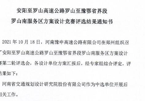 河南豫申高速公路有限公司于2021年8月,公开邀请国内多家优秀设计单位参与安罗高速罗山至豫鄂省界段罗山南开放式服务区方案设计竞赛。 经两轮设计竞赛评比过程中专家组综合评定,建筑规划设计院于2021年10月18日...