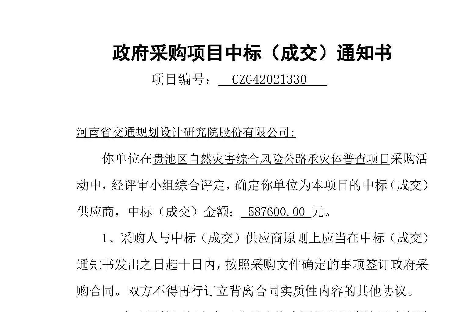在公司领导和市场部的大力支持与帮助下,2021年10月16日、11月12日,工程测绘与地理信息研究院先后成功中标安徽省池州市贵池区、青阳县《自然灾害综合风险公路承灾体普查》项目。 2020年6月8日,国务院办公厅印...