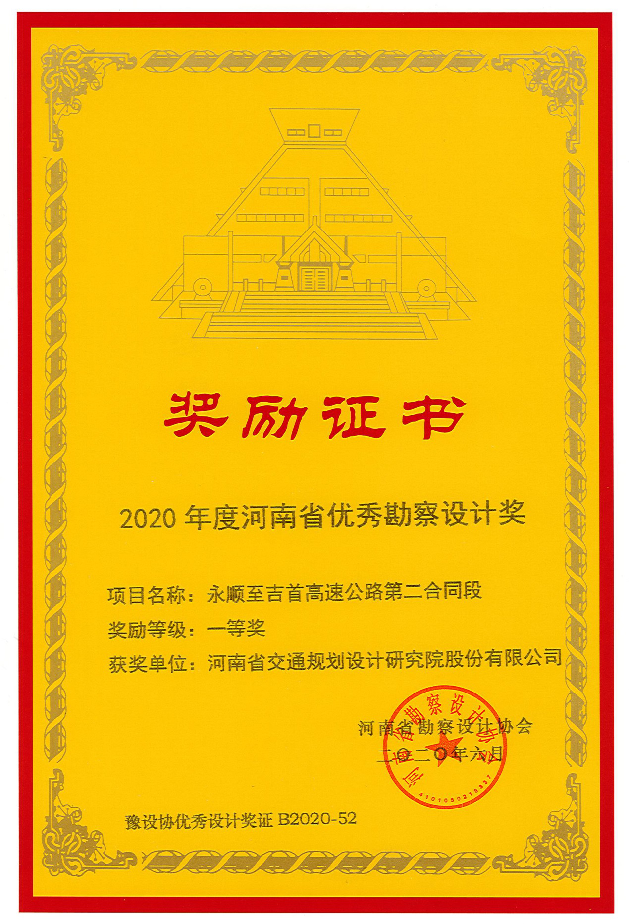 河南省勘察设计协会近日进行了2020年度河南省优秀勘察设计奖的评选活动,经过协会组织专家进行评选审定,我公司共获得奖项9项。其中包括设计一等奖2项,即《永顺至吉首高速公路 第二合同段》、《2018年许平南高速...