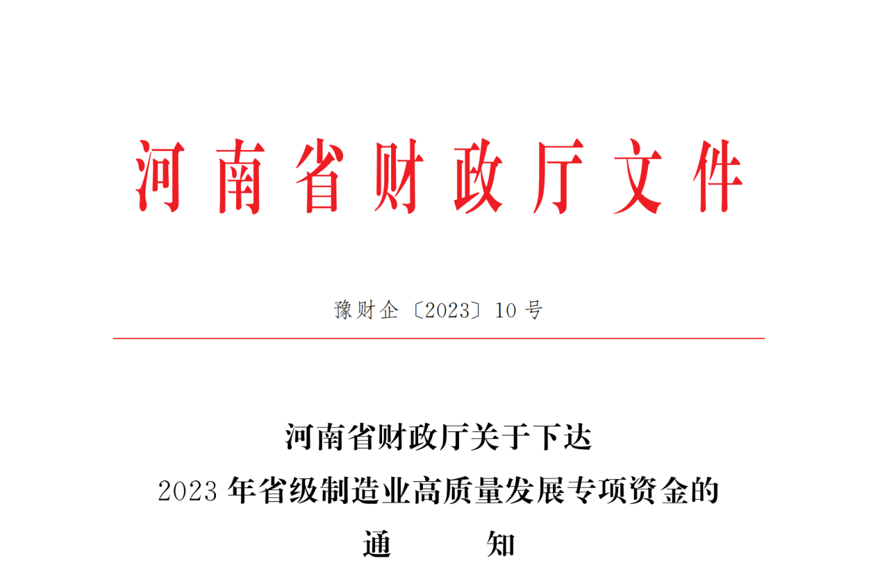根据豫财企〔2023〕10号《河南省财政厅关于下达2023年省级制造业高质量发展专项资金的通知》公示信息,经过原阳县科技和工业信息化局审核确认,河南中鼎智建科技有限公司“机器换人”示范项目支持资金已于近期拨付...