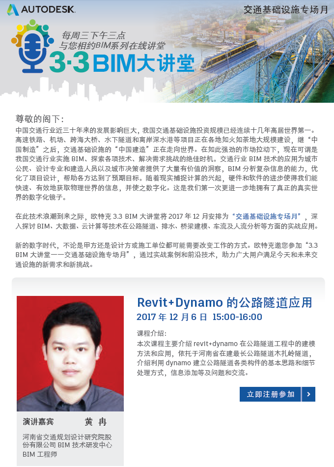autodesk公司推出的“3.3 bim 大讲堂”是基于对 bim 技术推进的坚定理念所开设的网络课程,自 2015 年 7 月创办至今已成功举行了六十余场高品质的在线讲座。以理论联系实践的务实方法集中展示了大量优秀 bim 应用...
