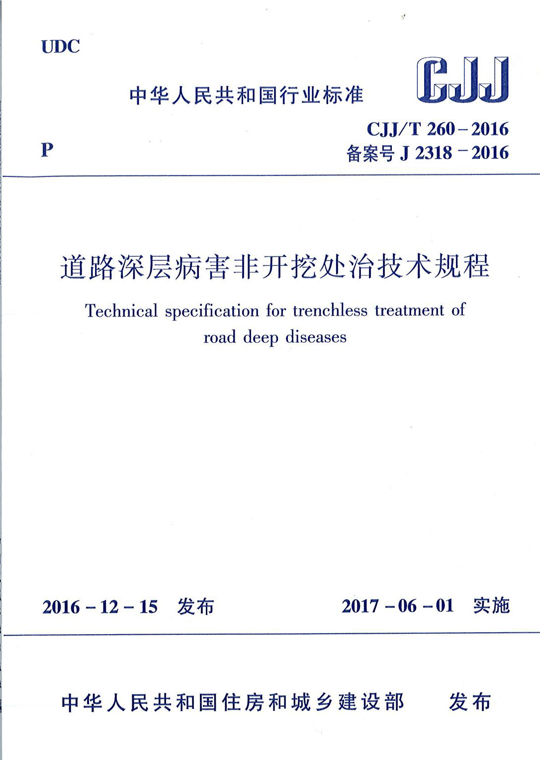 我公司参编的中华人民共和国行业标准《道路深层病害非开挖处治技术规程》(cjj/t 206-2016),于2016年12月15日发布,2017年6月1日实施。