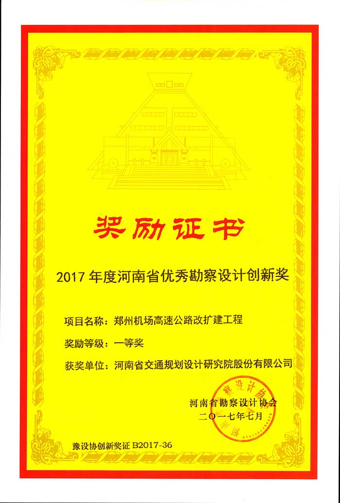 河南省勘察设计协会近日进行了2017年度勘察设计创新奖的评选活动,经过协会组织专家进行评选审定,我公司共获得奖项4项。其中包括特等奖一项《武陟至云台山高速公路采空区专项勘察》;一等奖三项,即《郑州机场高速...