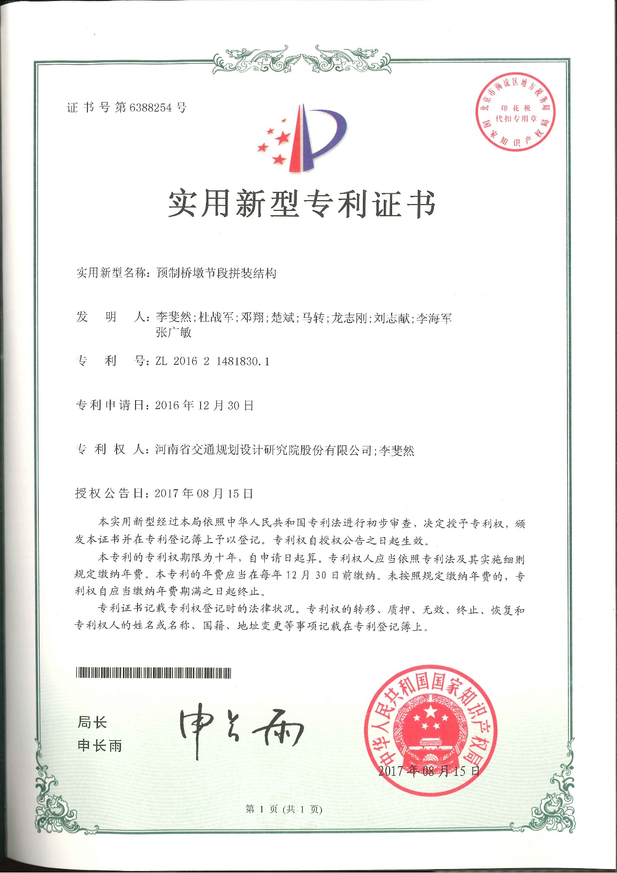 近日,由我公司桥梁设计研究院申报的《适用于铰接t型截面梁的横向加固系统》、《一种新型体外预应力加固装置》、《超高性能混凝土波形钢腹板组合箱梁》、《下承式系杆拱桥》、《预制桥墩节段拼装结构》五项专利顺...