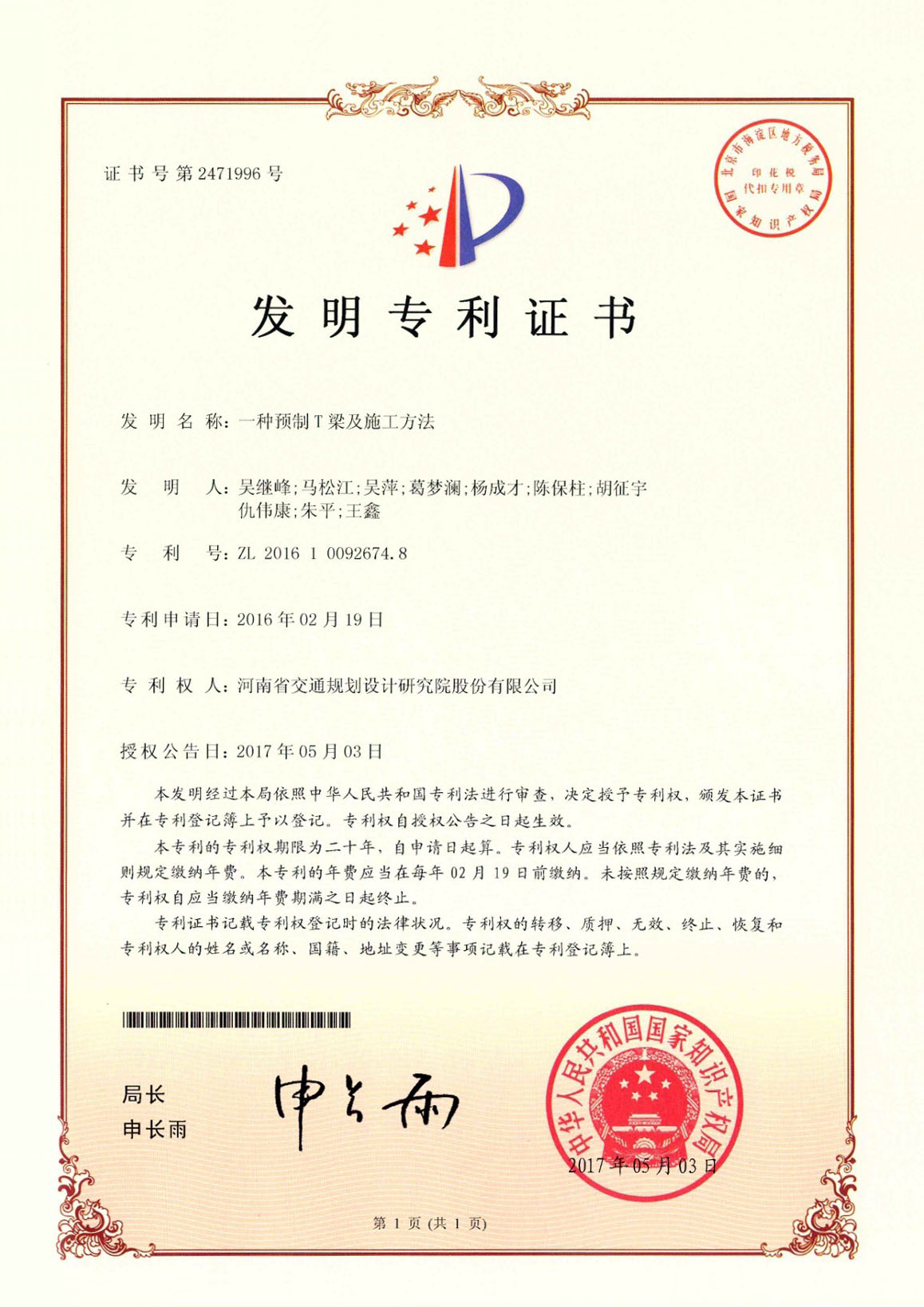 近日,公司公路与水运设计院申报的“一种预制t梁及施工方法(zl2016 1 0092674.8)”获国家发明专利授权。本发明公开了一种预制t梁及施工方法,通过将t梁的桥面板与纵梁部分分开预制,有效克服了混凝土t梁拼装遇到的...