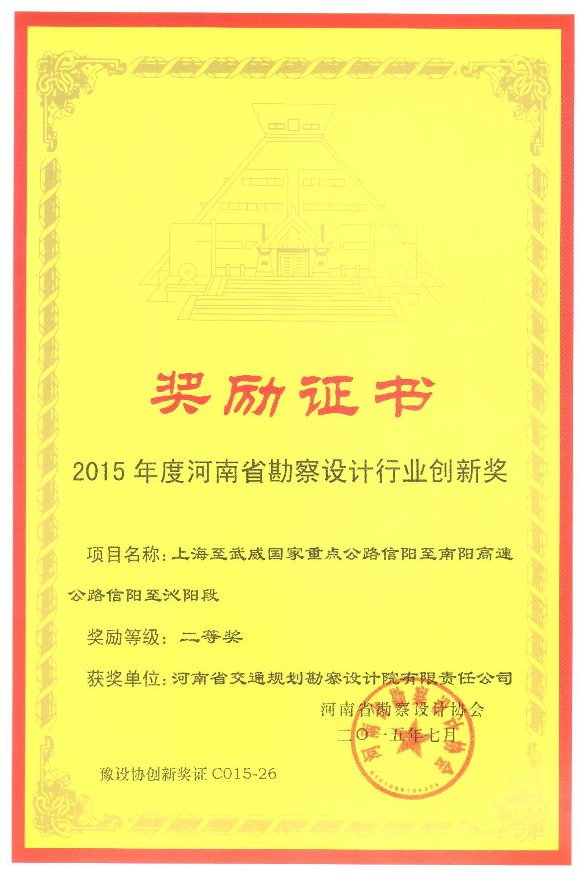 河南省勘察设计协会近日进行了2015年度行业“创新奖”的评选活动,经过协会组织专家进行初评、评选办公室核验和创新奖审定委员会审定,我公司共获得奖项7项。具体获奖情况如下:一等奖:《林州至长治(省界)高速公...