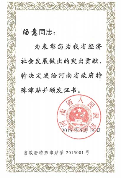 5月29日,省政府召开表彰大会,为首批享受省政府特殊津贴的150名专家颁发证书和奖金。副省长王艳玲出席会议,并发表了讲话。我公司副总经理汤意同志作为首批享受特殊津贴专家出席了会议并接受省政府的表彰。 获...