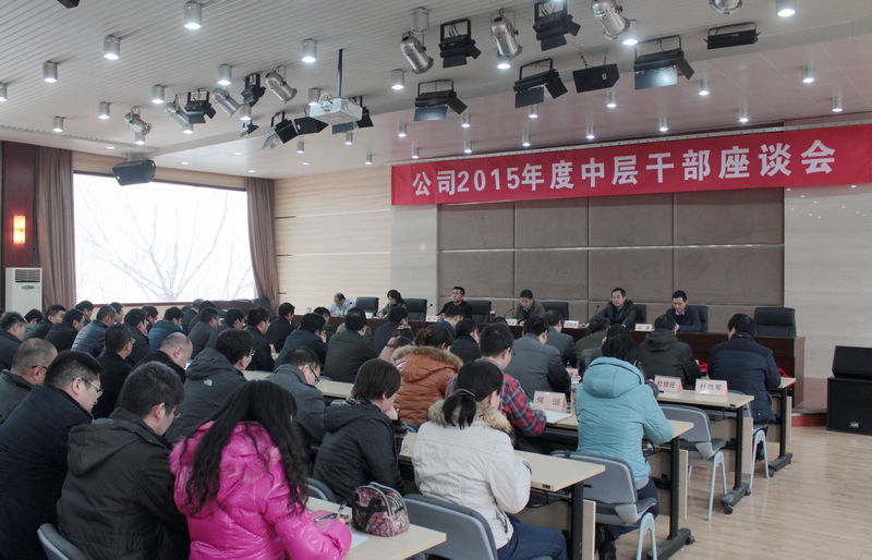 1月15日,公司在东三楼会议室召开了2015年度中层干部座谈会,公司中层副职以上干部、副总工共计一百余人参加了会议。公司监事会主席、党委副书记、纪检书记李智宣读了《关于尊龙ag旗舰官网中层干部任免的通知》,公司工会主...